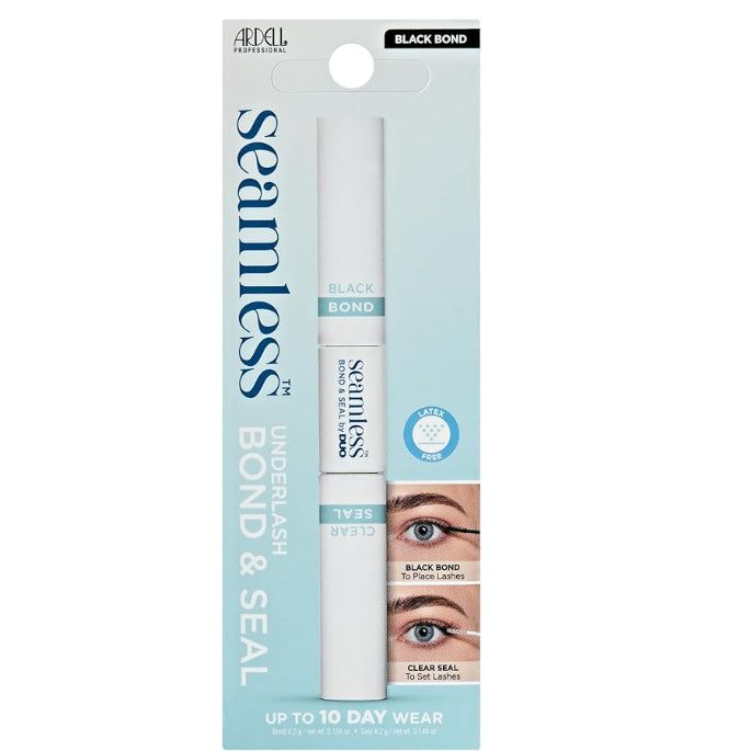 APPLICATION VERSATILITY The innovative underlashing technique is facilitated by the Ardell Seamless Bond & Seal, which offers a versatile glue with black and transparent options to suit different makeup styles and preferences.