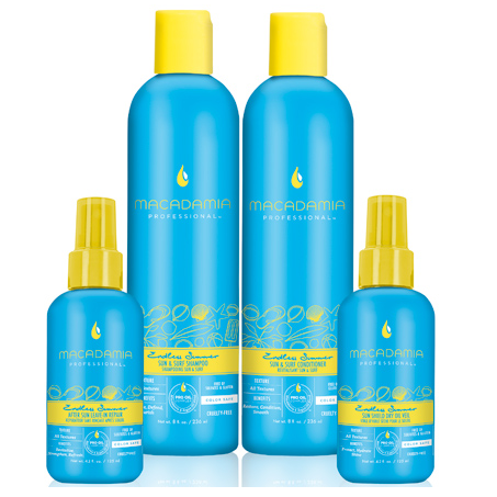 Help your clients get gorgeous hair all summer and shield their strands from sun damage with the new Macadamia Professional Endless Summer Collection. This new four-part system includes a Sun & Surf Shampoo and Conditioner, Sun Shield Dry Oil Veil and After Sun Leave-In Repair to address the needs of hair during the summer months and embrace its carefree styles. Specifically developed to fight frizz, lock in moisture and protect against harsh summer aggressors, the Endless Summer Collection is infused with the Macadamia Professional nourishing PRO OIL COMPLEX of Macadamia and Argan oils. Rich in Omegas 7, 5, 3 and 9 these oils promote healthy, shiny manageable hair.