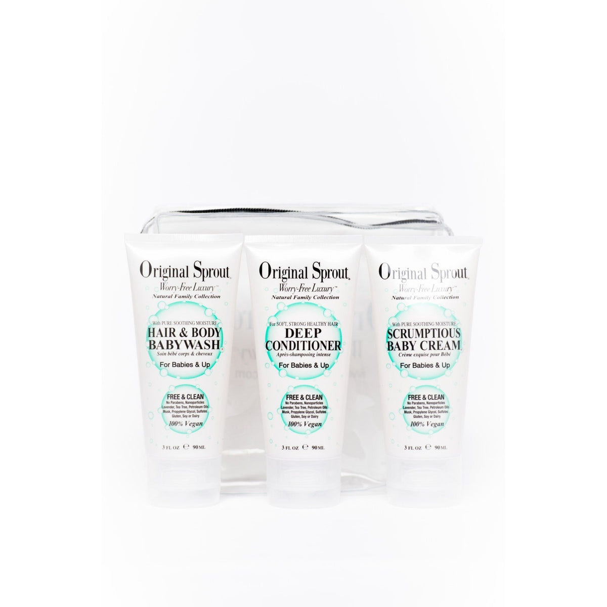 A convenient bundle for your baby’s first trip, our Travel Trio has what you need to keep you and your little one clean and nourished.
