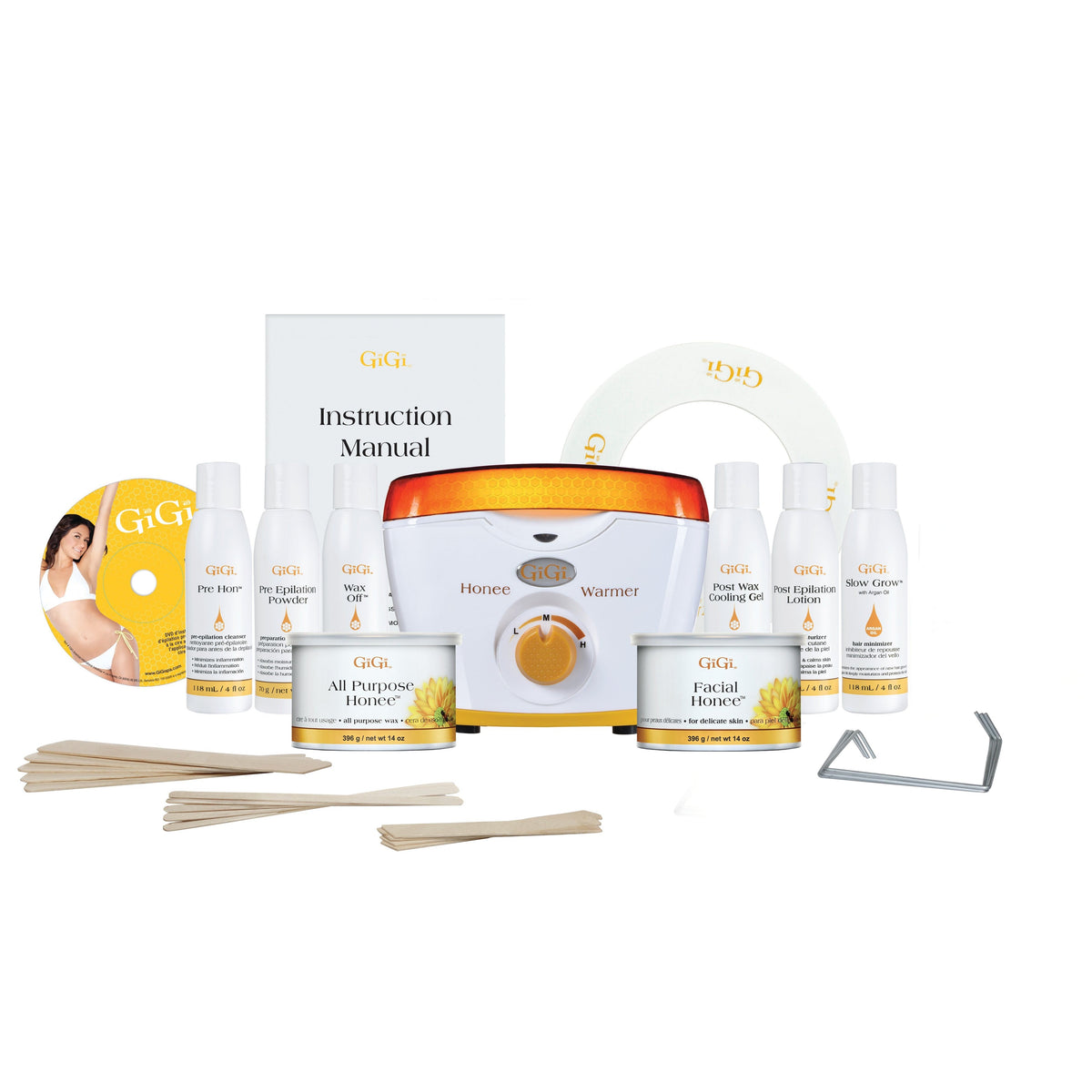 The GiGi Pro 1 Kit is a complete professional hair removal system that contains everything the professional esthetician needs. The GiGi Pro 1 Kit includes an array of lotions, cleansing products, GiGi All Purpose Honee, GiGi Facial Honee, a 14 oz. Professional Warmer and an instructional DVD.