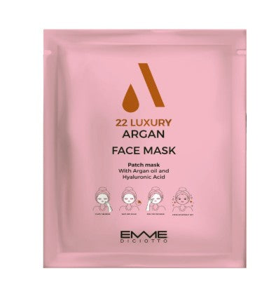 Disposable viscose face mask with argan oil and hyaluronic acid, provides skin elasticity, moisturizes and nourishes. Suitable for all skin types.